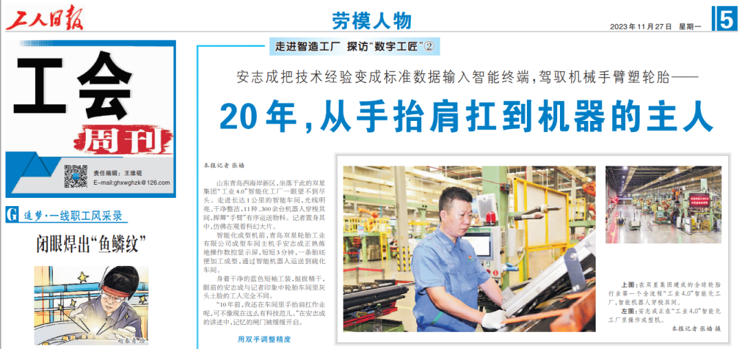 工人日?qǐng)?bào):走進(jìn)智造工廠(chǎng),探訪(fǎng)雙星集團(tuán)“數(shù)字工匠”安志成